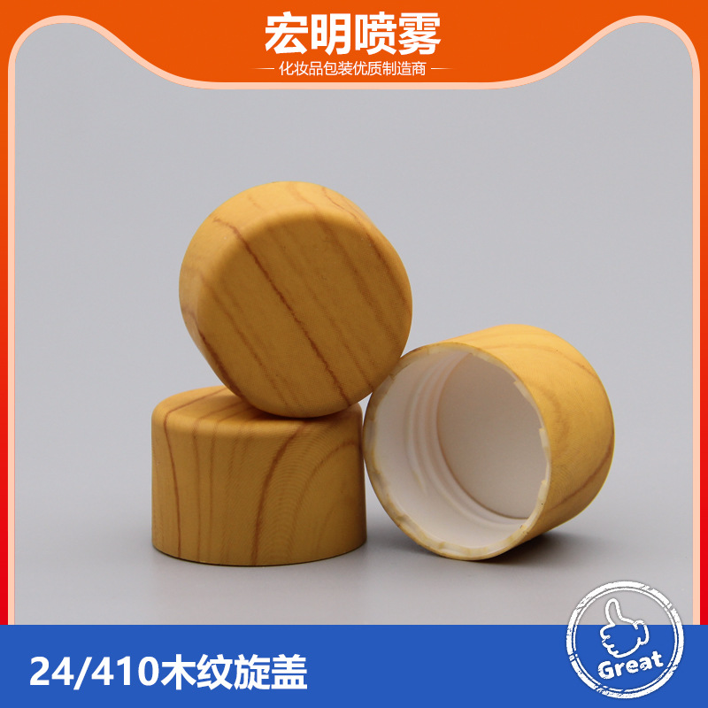 24/410プラスチック木目キャップ円形化粧品キャップスクリューキャップスクリューキャップ水転写印刷化粧品キャップ