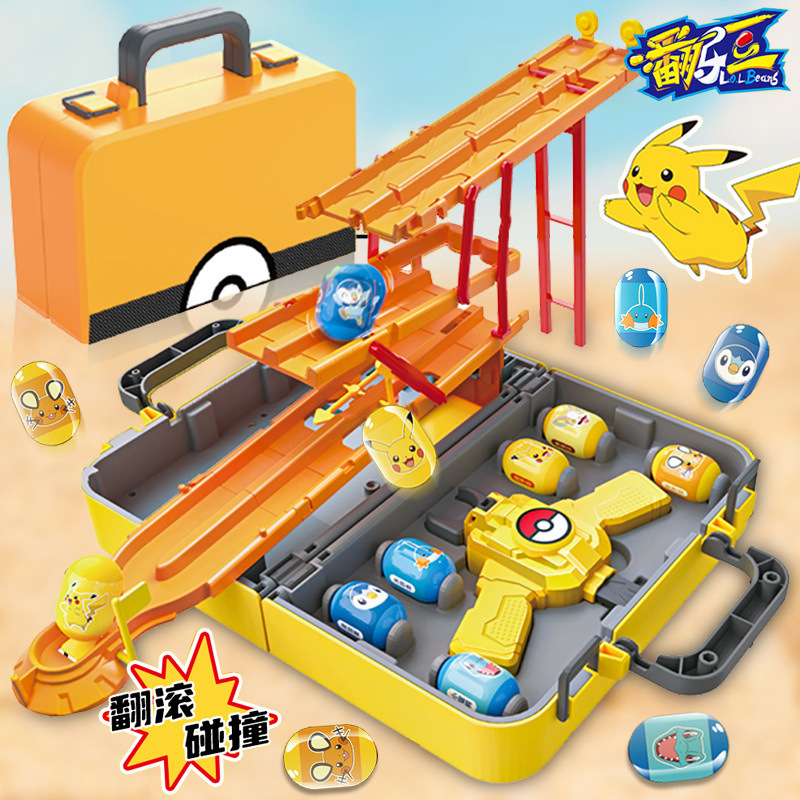 庄臣宝可梦翻乐豆系列轨道套装皮卡丘亲子互动玩具杰尼龟双人对战