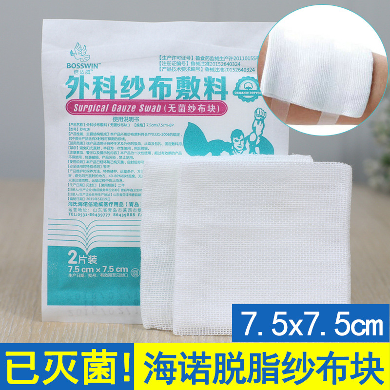 海氏海諾医療用ガーゼ無菌脱脂ガーゼブロック滅菌消毒傷口包帯補助材料シート7.5cm