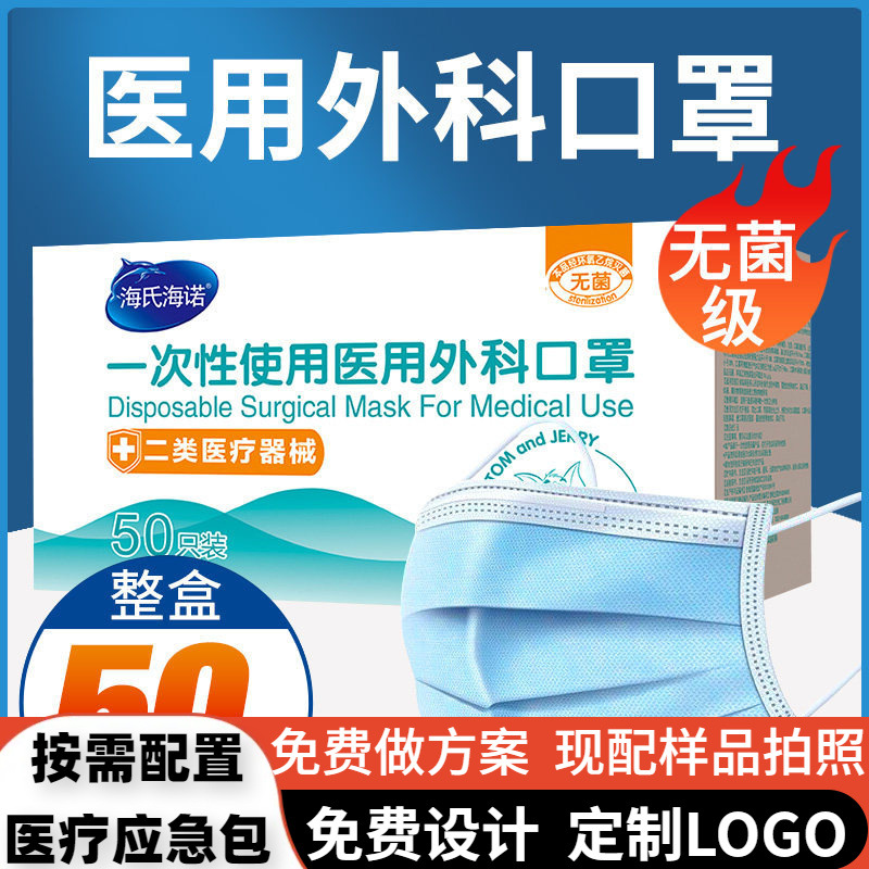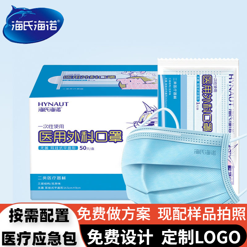 海氏海諾医療用外科マスク使い捨て三層防護成人モデルブルー独立無菌マスク卸売り