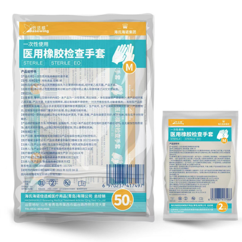 Haishi Hainuo Beishiwei 医療用ゴム検査手袋滅菌済み 2 個/袋個別包装使い捨て