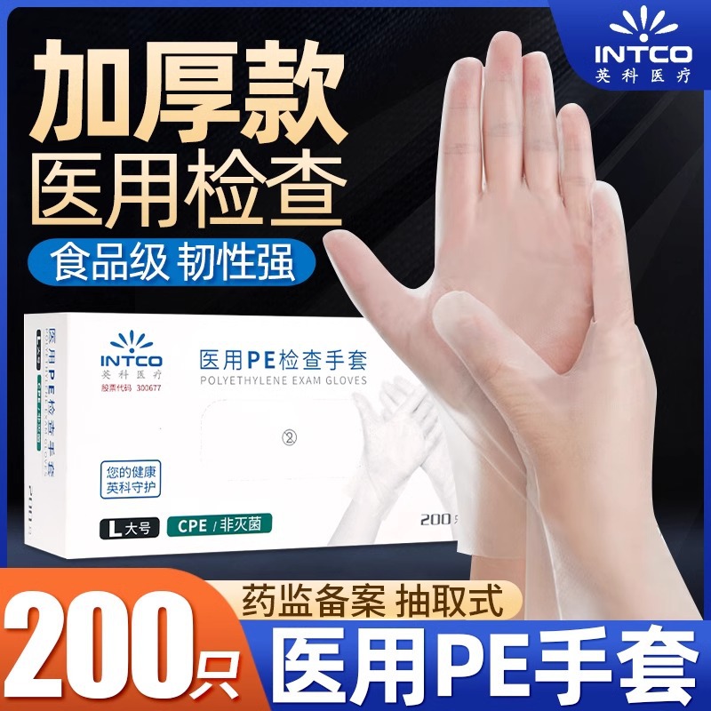 英科使い捨て医療用PVC手袋防水家庭用家事衛生増厚無粉防護検査手袋100
