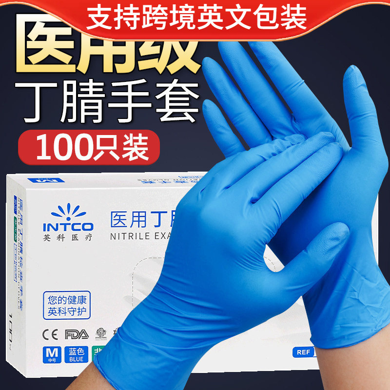 英科使い捨て医療用丁晴手袋ブルー粉なし厚手医療看護師がpvc防護手袋卸売りを検査し