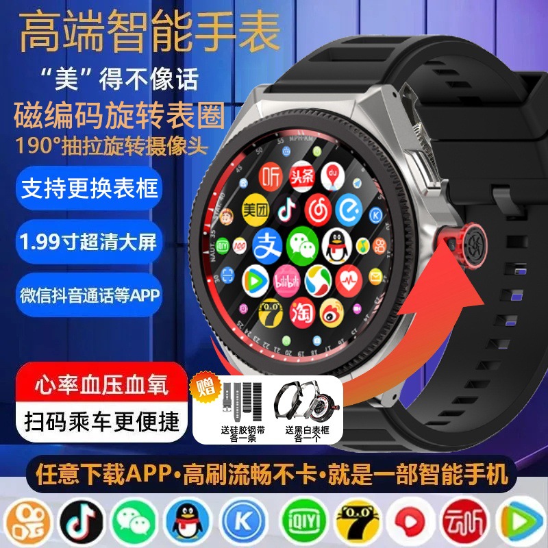 1.98inch 特大フルスクリーン挿入可能なカード電話スマートウォッチ学生高価値 5g フルネットワーク回転ベゼル