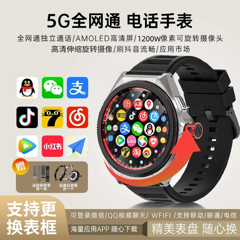 新しいツーインワン超クリア大画面回転ベゼル5Gカード無料ダウンロードAPPスマートフォンウォッチ