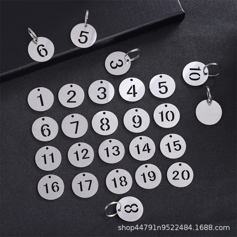 ステンレスのつるつるした番号札のレーザー材料の円形の札の麻辣热の数字のつるしの札の番号札