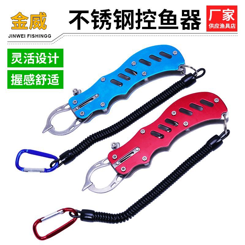 アルミ合金製魚制御器路亜鉗子魚口鉗子路亜釣り鉗子制御魚鉗子箱に弾力ロープ付き魚クリップ器が入っている