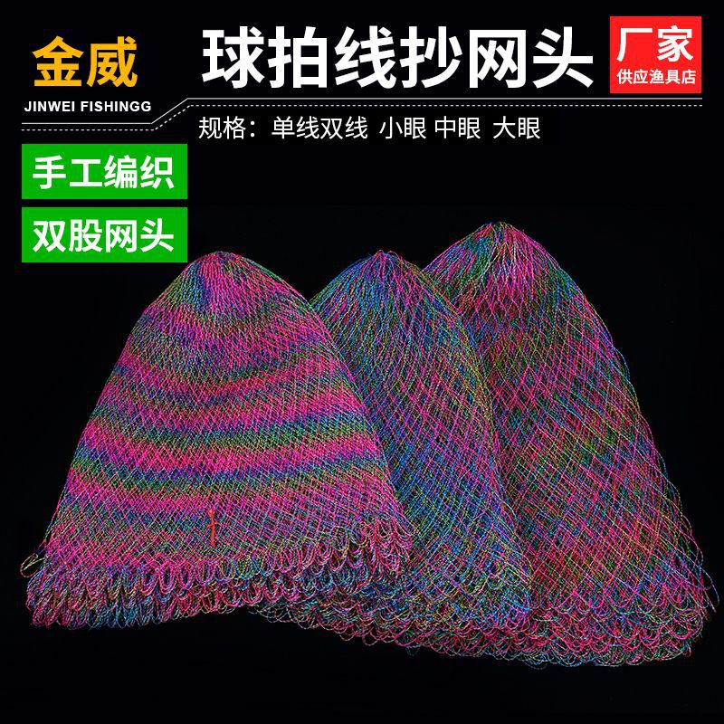 カラフルなラケットライン、大小の目、シングルおよびダブルライン、ダイマーマルチカラーネット、釣りネット、釣り交換用ネットヘッド