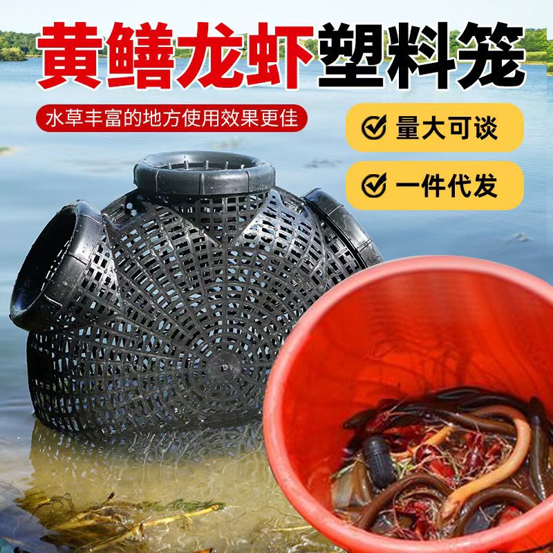黒いプラスチックのうなぎのかごの3穴の8穴の厚いプラスチックのうなぎのかごの1字のかごの丸い穴のロブスターのどじょうのかご