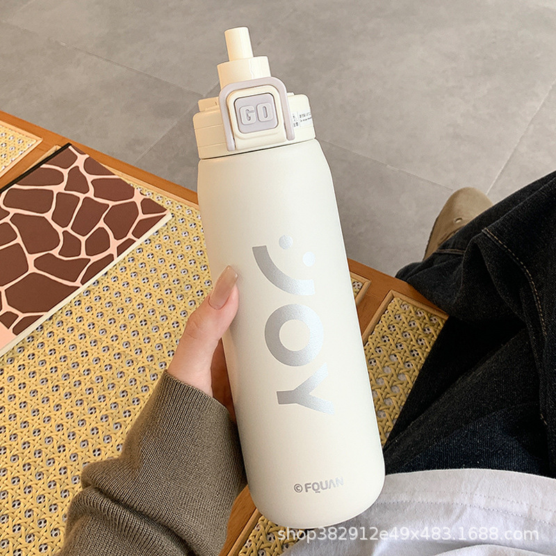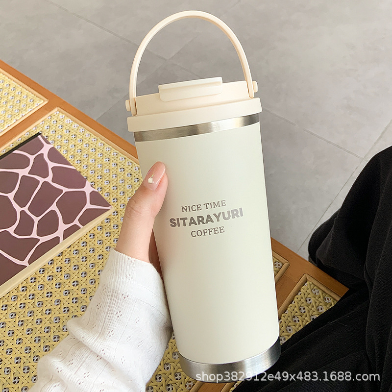 ストロー保温カップ女子大容量高颜値学生カップ持ち手携帯シンプル304ステンレスカップ
