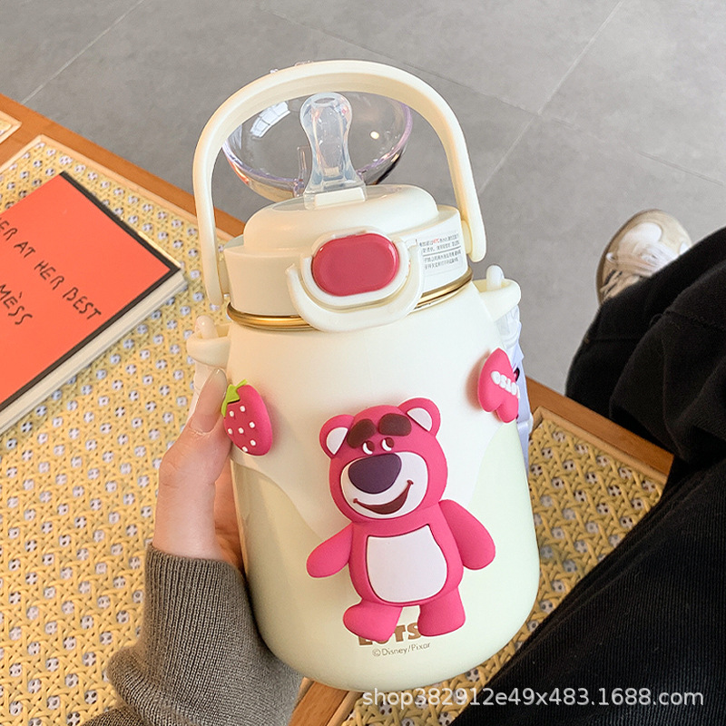 いちご熊保温カップ女性かわいい大容量ストローカップ高颜値携帯水筒316ステンレスカップ