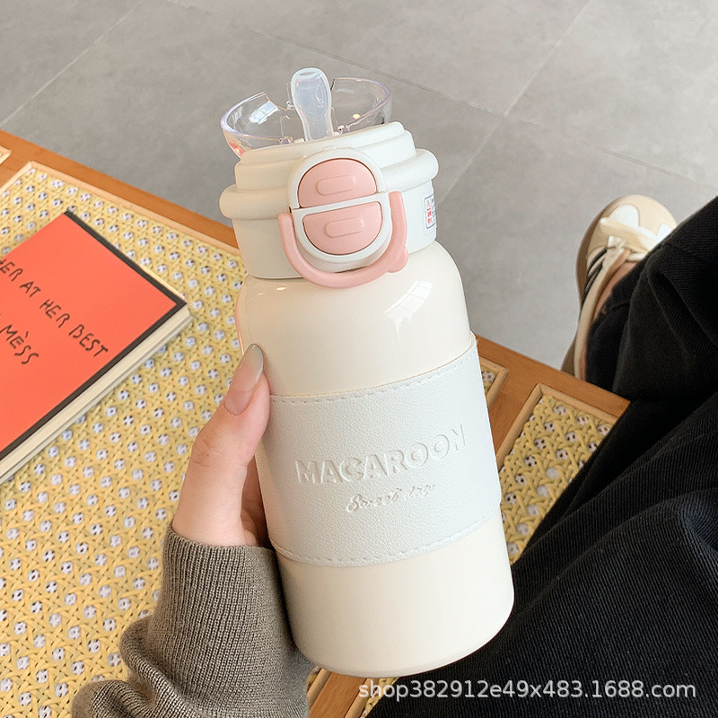 ストロー保温カップ女316ステンレスコップ学生携帯高颜値2024新型シンプル弾蓋コップ