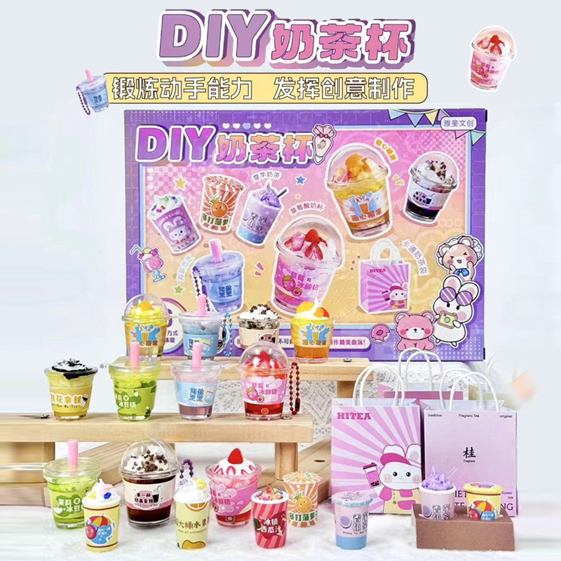 Diyミニミルクティーカップ子供手作りおもちゃ材料バッグクリームゴム女の子セット小学生女の子女の子