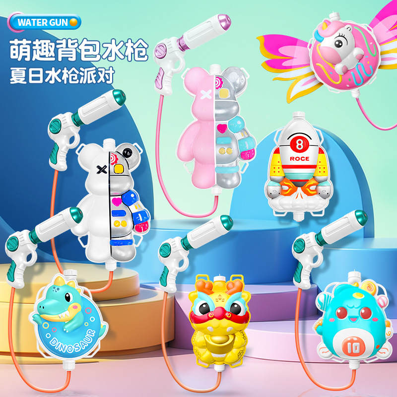 漫画のリュックサックの水鉄砲は水を打って夏の砂浜の屋外で引き出し式の水遊びの子供のおもちゃの卸売りをします6歳