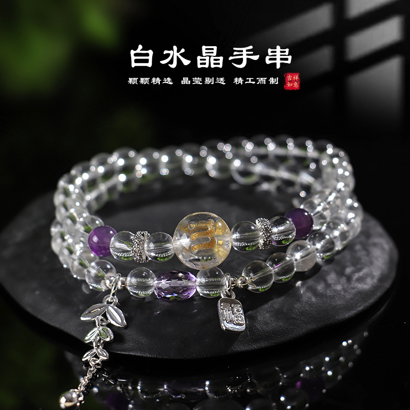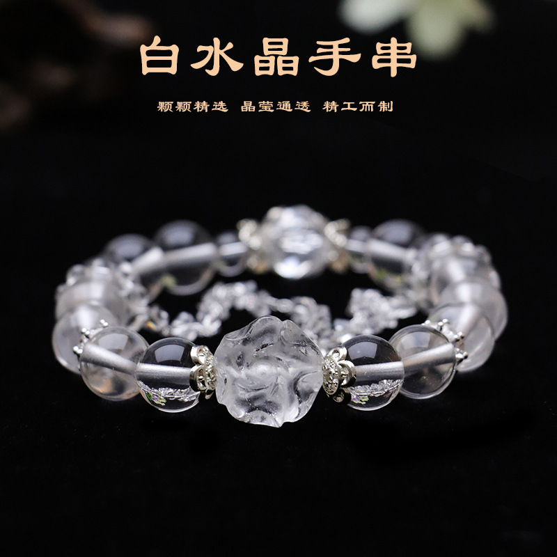 25年新型白水晶黄水晶蓮花九尾狐部品水晶ブレスレット単輪男女生放送震え音