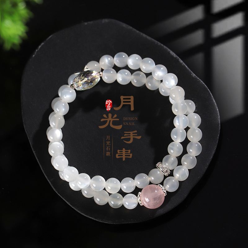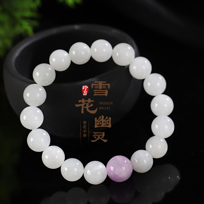 25年新型オリジナル自主設計月光石雪花幽霊白玉髄手串と海藍宝紫リチウム輝