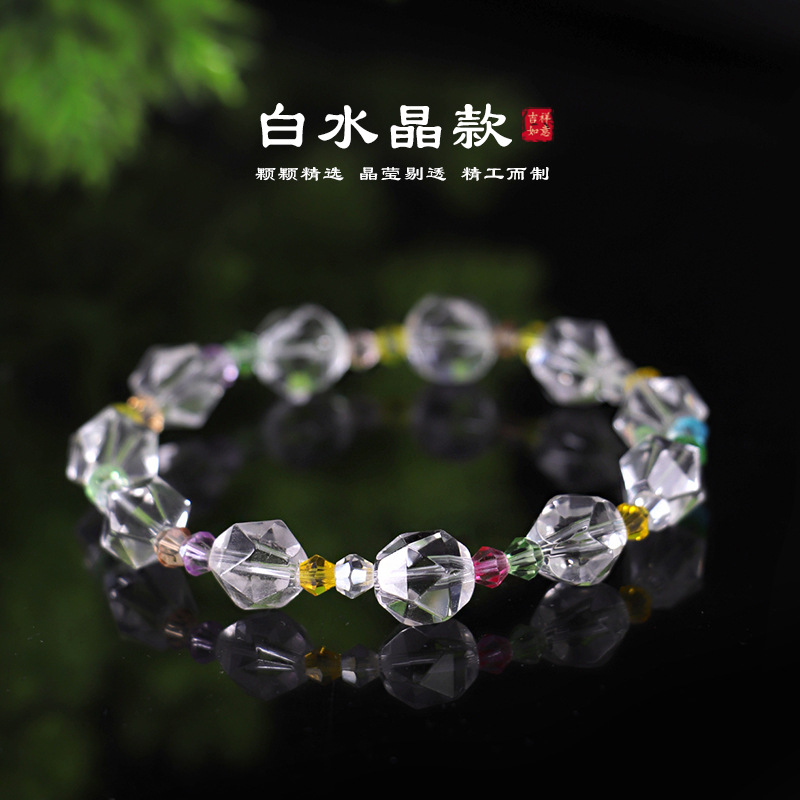 25年3月新型随性水晶弾力ブレスレット女性不規則白水晶切断面水晶ビーズDIY手飾り