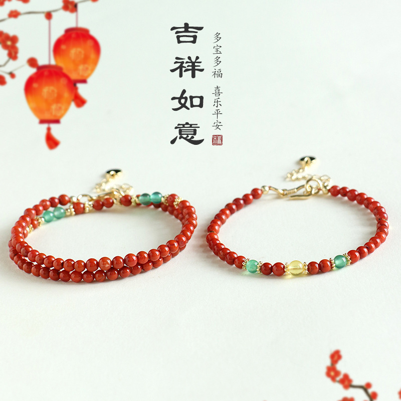 天然凉山南紅瑪瑙の手串小米珠本命年の細い金の小さい大衆の極めて細い双輪のブレスレットの女性