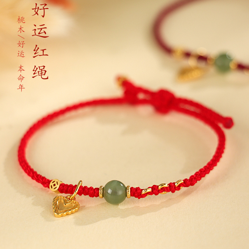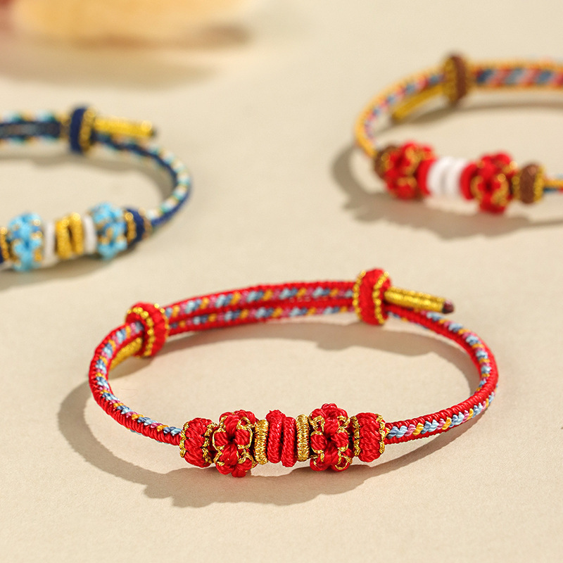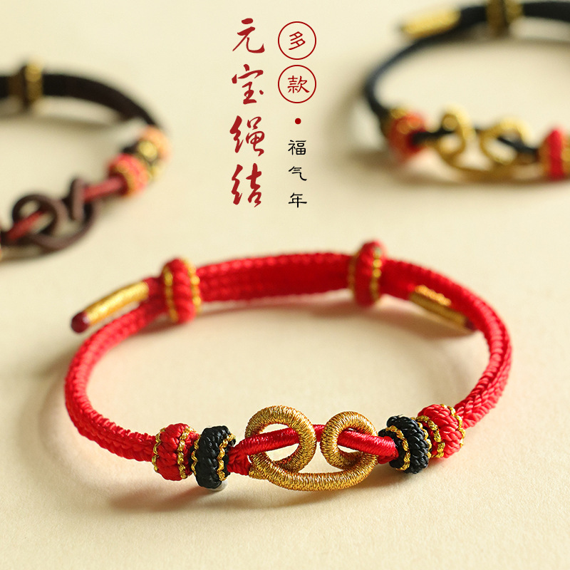 敦煌手編みdiy手綱本命年紅縄編みひも男女桃花結輪編みブレスレット女義烏
