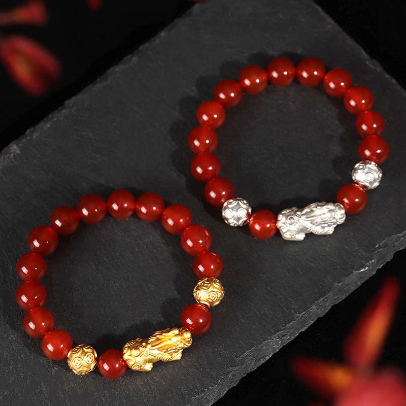 999銀のピシュピストの赤い瑪瑙の数珠のカップルのブレスレットの女性の大衆感の中国風の手の串のアクセサリーの卸売り