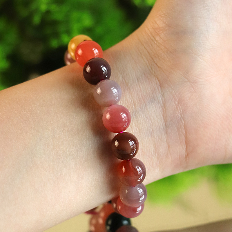 フルカラー塩源瑪瑙ブレスレット10mmレインボーカラフルキャンディシングルサークル水晶手串男女モデル