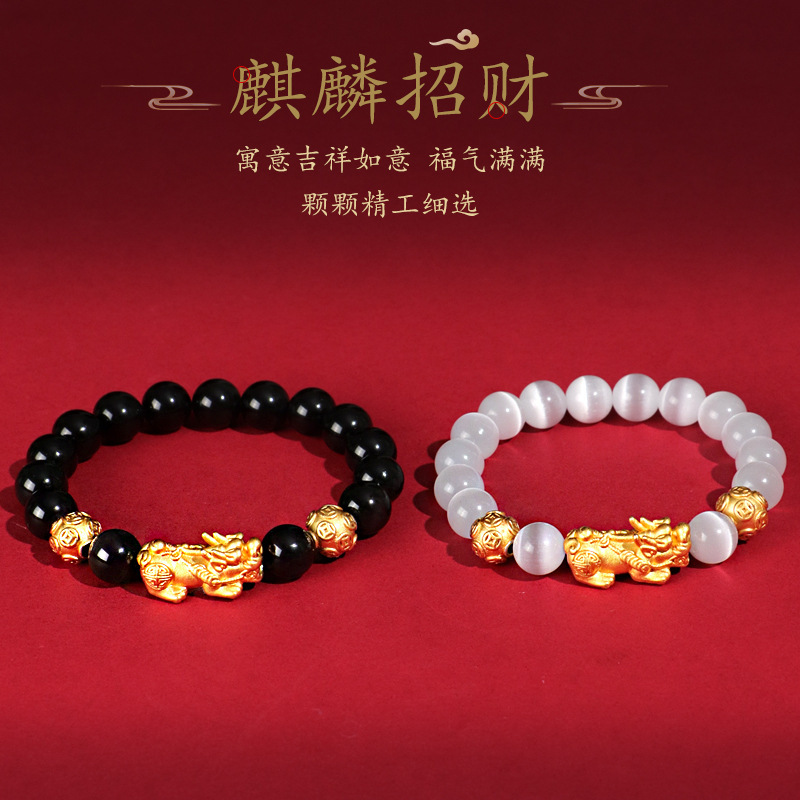 999銀ピシュピスト黒瑪瑙カップルビーズブレスレット女性中国風感猫眼石手串ジュエリー卸売り