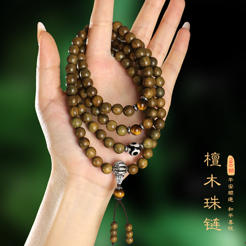 108個の緑檀木仏珠数珠多輪手串男女士カップルのブレスレットは無事に古風に手に持っている
