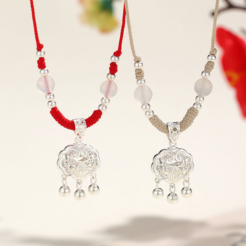 新中国式925銀隔珠花糸透かし彫りアクセサリー999銀福錠白瑪瑙紅縄ペンダント男女ネックレス
