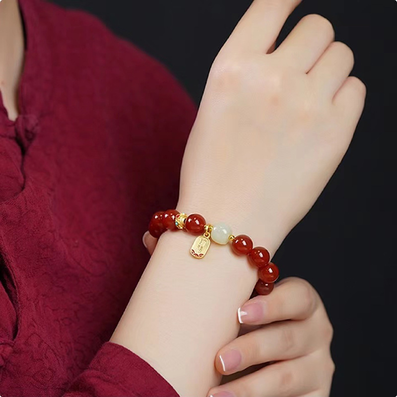 純粋な天然の赤い瑪瑙のブレスレットの女性の国の潮の小さい大衆の設計と田玉は高くて貴重な手の串の新しい中国式の納福の手の装飾を現します。
