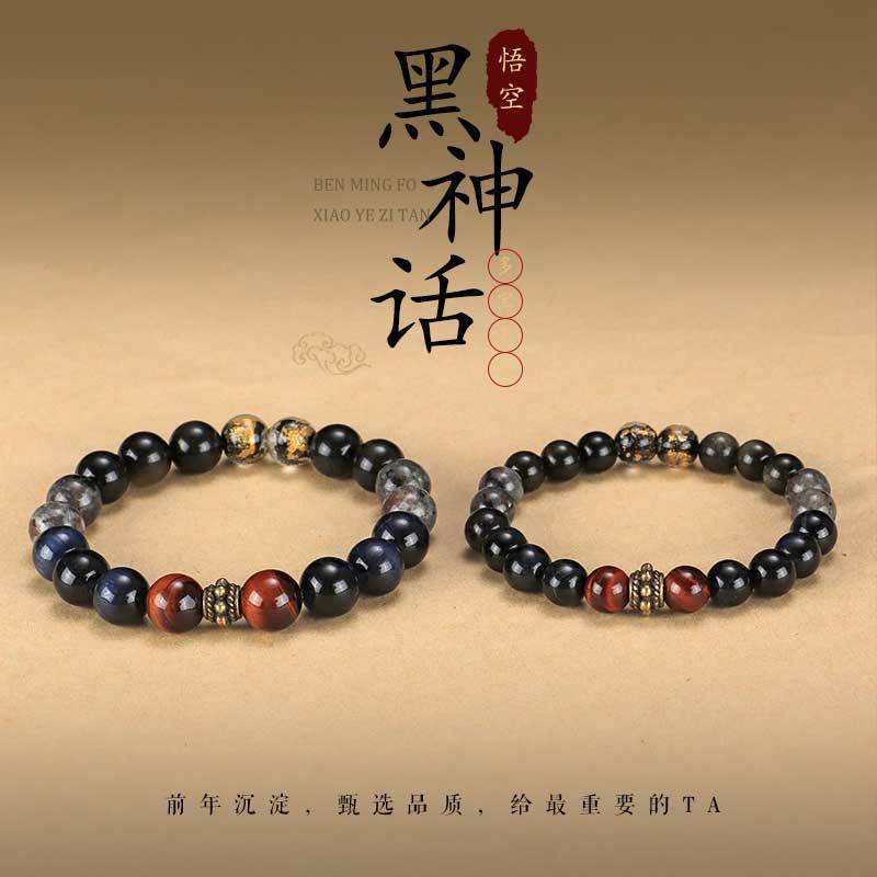 オリジナルデザイン黒神话悟空カップルブレスレット金曜石火炎石金箔瑠璃手串赤虎眼手饰り
