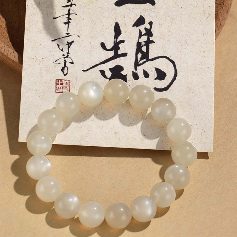 新商品白月光宝石手串ブレスレット純白蛍光白玉天然ボール羊脂色ビーズ卸売り