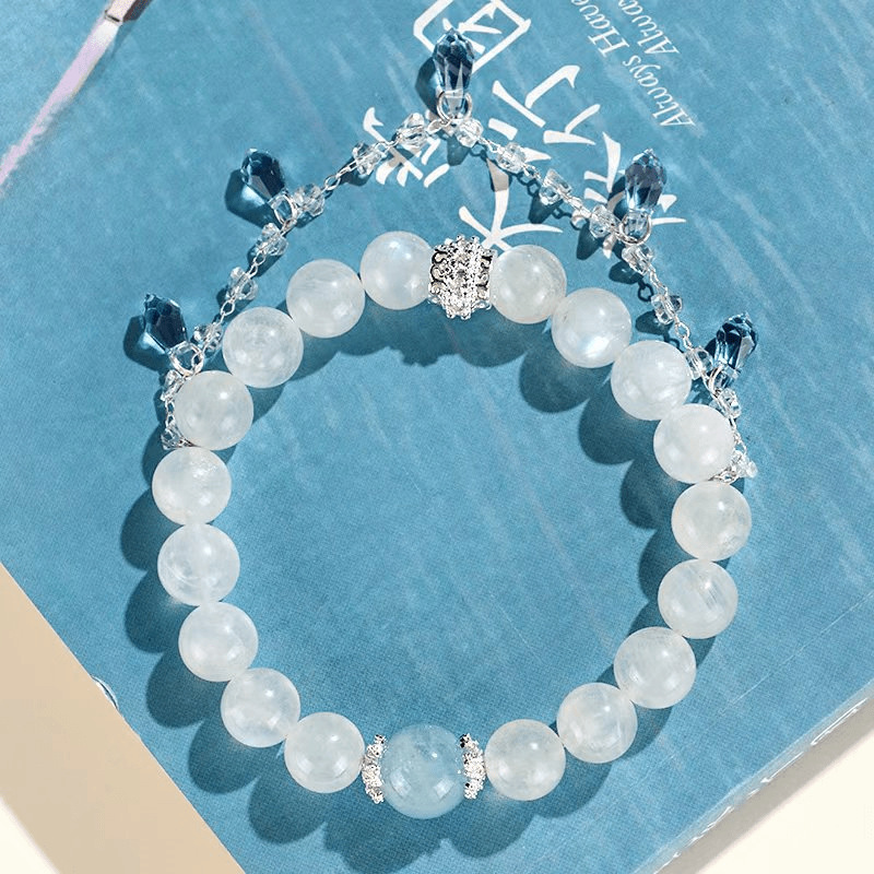 新商品の青い涙の天然の白い水晶の海の青い宝のファッションの女性の手は青い月の光の宝石の小さい大衆の双鎖のブレスレットを結びます。