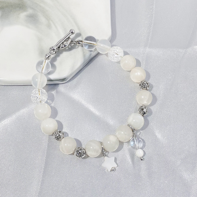 天然白月光水晶手串女小衆高級感貝殻星白水晶ブレスレットシンプル手飾り卸売り