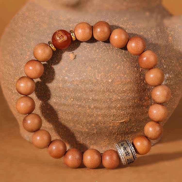 桃の木の数珠の手は男女の金の復古の赤い瑪瑙の生肖のブレスレットの新しい中国式の文を刺して簡単に本命の年の手を遊んで飾ります。