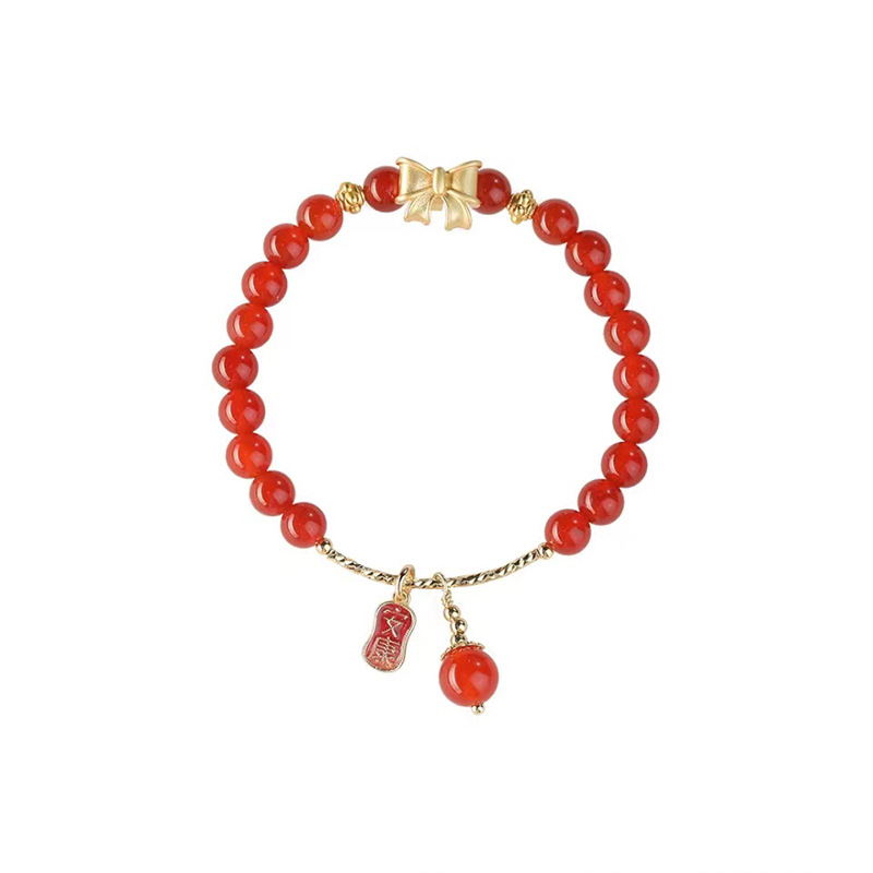 天然の赤い瑪瑙のブレスレットの女性の大衆の高級な事の蝶結びの福のブランドの安康の手串の新しい中国式の手は卸売りを飾ります。