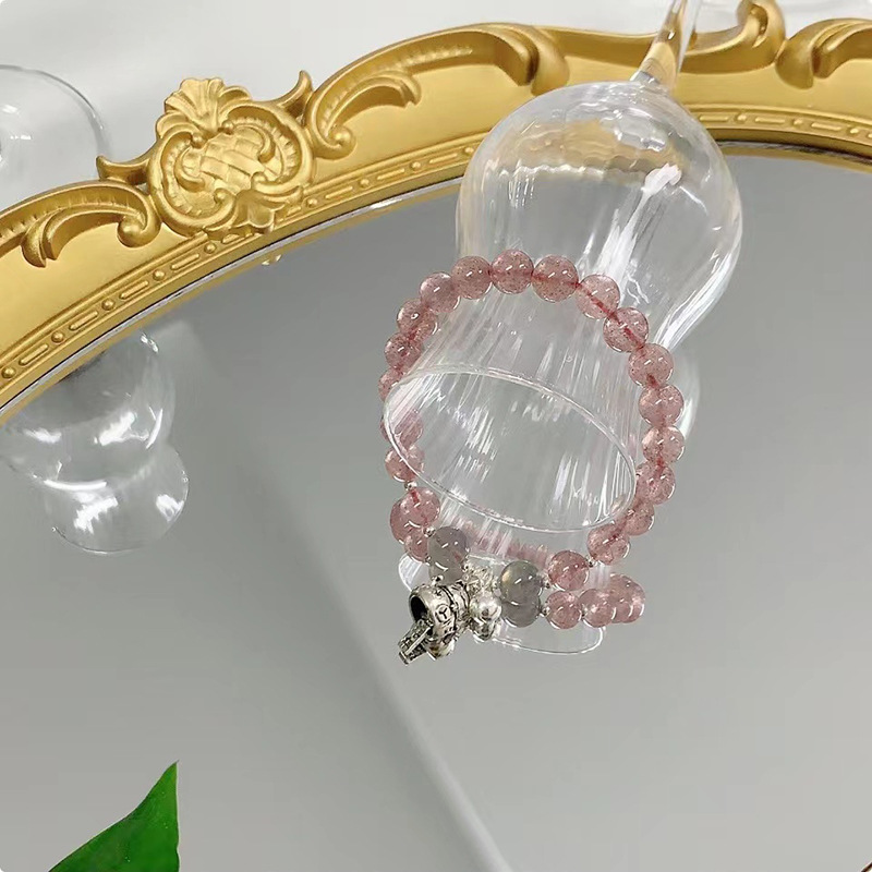 天然いちご結晶水晶手串新中国式S925銀鈴手飾り小衆高級灰月光数珠手串