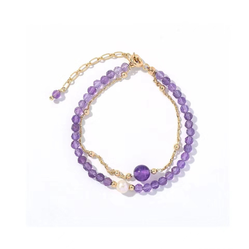 4mm極細カット面紫水晶ブレスレット二重畳み小衆高級感手飾り天然真珠手串卸売り