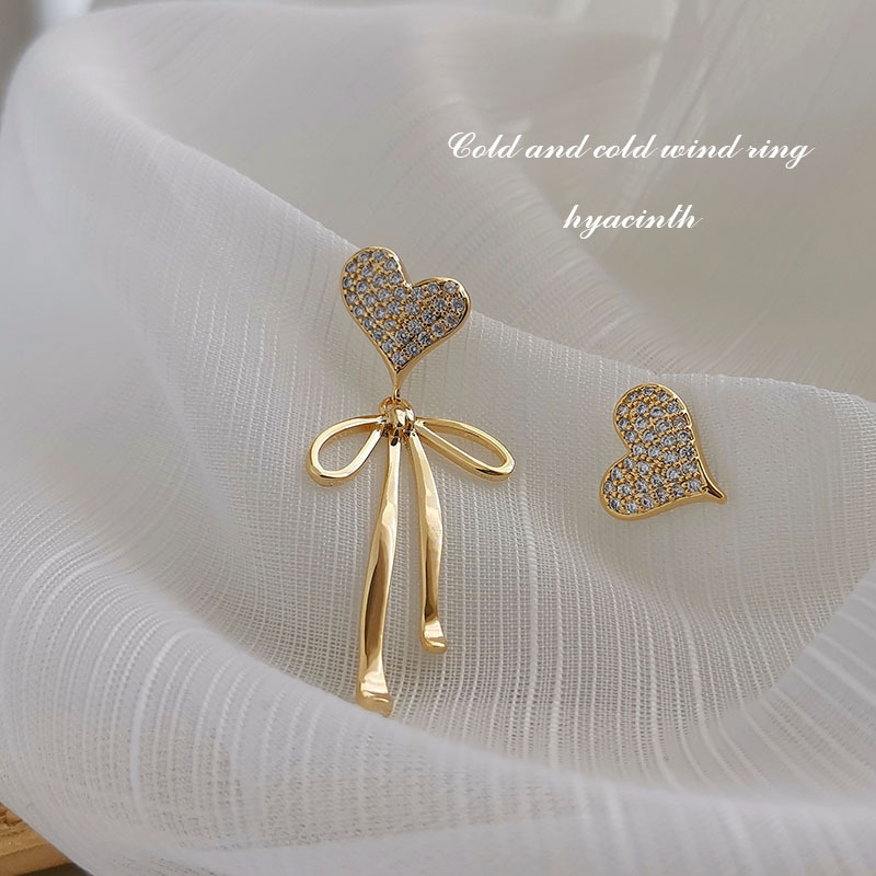 Hyacinth新作気品见せ痩せ爱ハートちょう结びイヤリングレディース韩国ファッション超フラッシュジルコンイヤリングピアス
