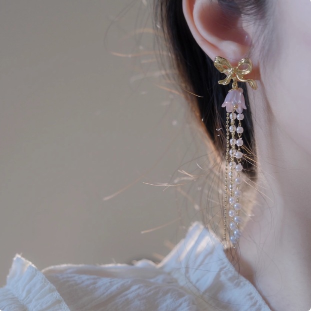 「ユートピア花園」フランスのロマンチックなイヤリングの薄い紫色のすずらんの真珠の流蘇の蚊の香りの皿の耳は女性の卸売りを挟みます。