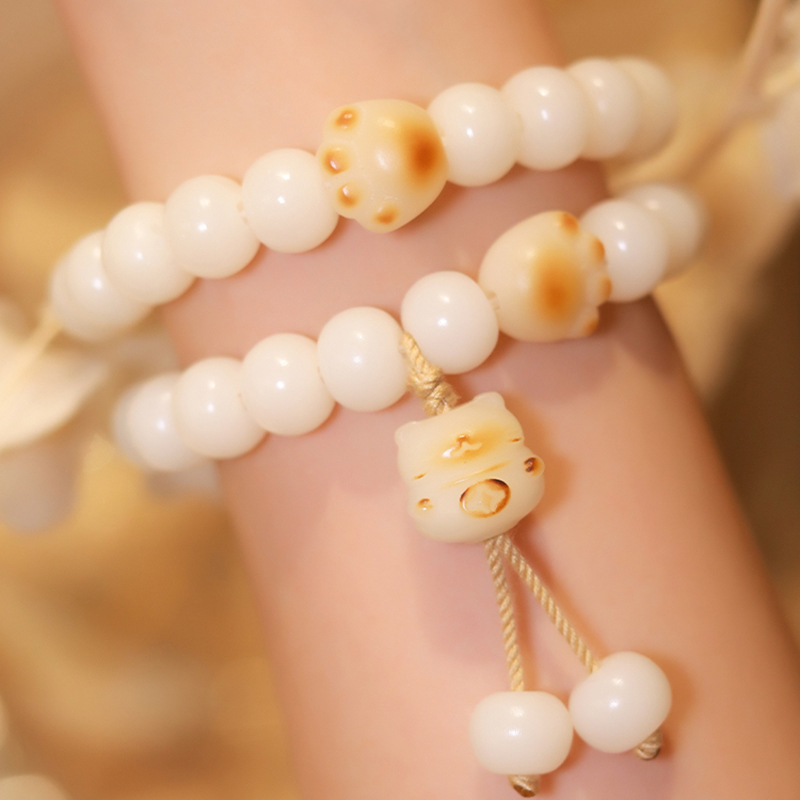 炭焼き猫の爪の猫の菩提根のブレスレットの女性の天然の白玉の菩提子は指の柔らかい文を巻いて遊んで菩提の手の串を持ちます。