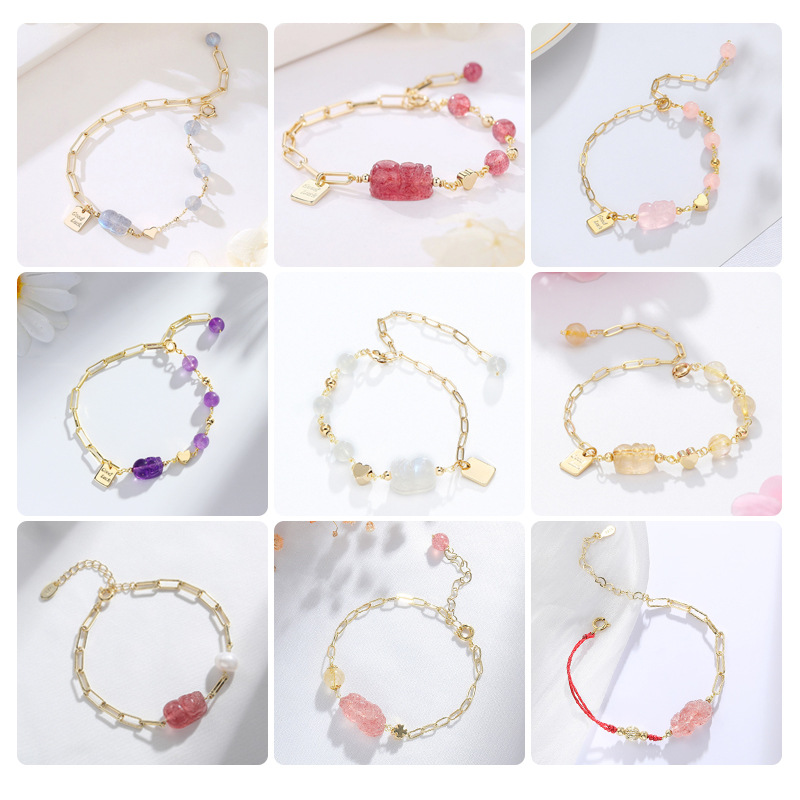 天然の粉晶のピシュピストの女性のブレスレットの小さい大衆のデザイン感の銀の曜の石の手は男性の金を飾って小さい大衆のカップルの金の手を編みます。