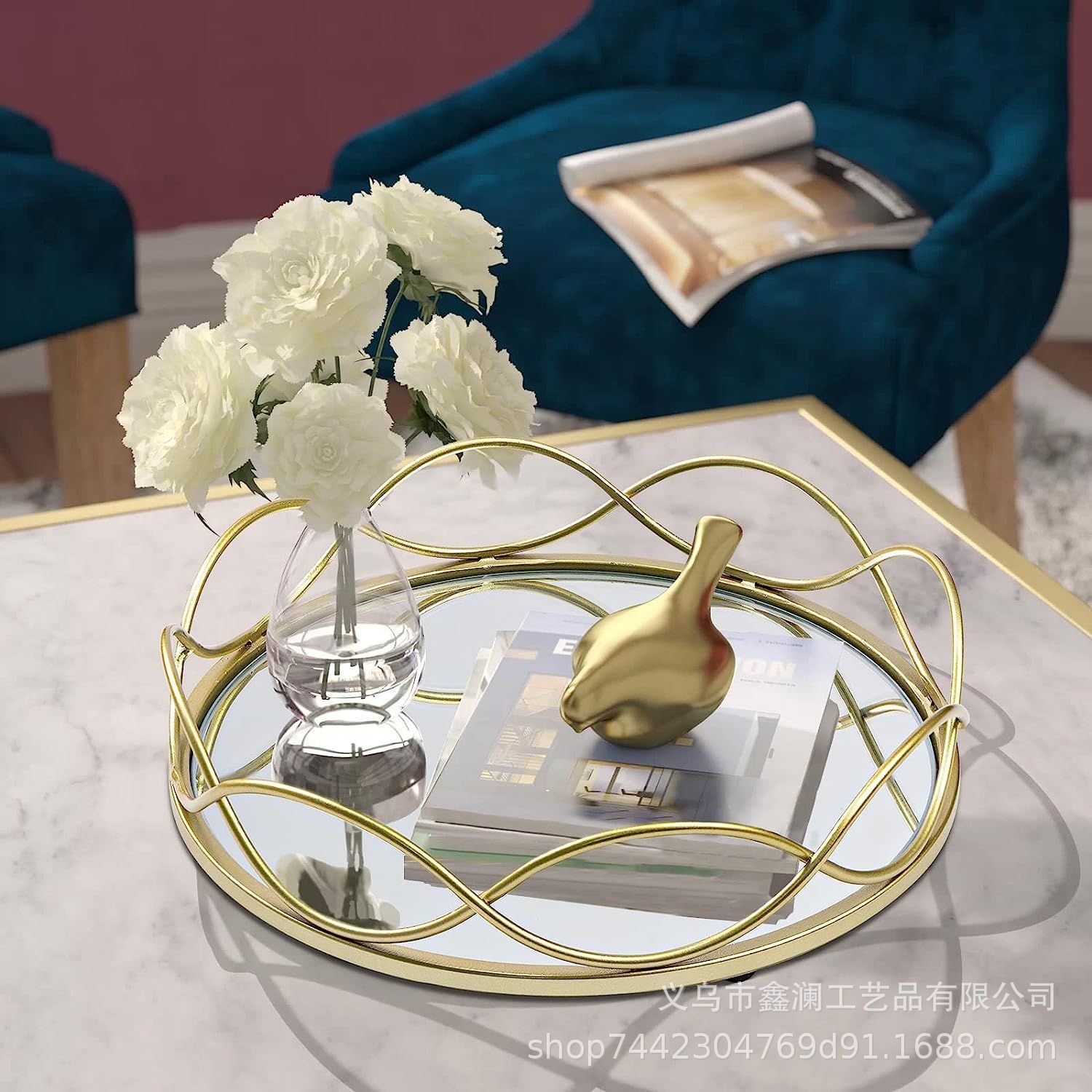 円形鏡面トレイ香水ジュエリー収納化粧台化粧室浴室寝室リビングルームティー装飾トレイ