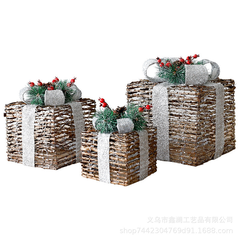 レモンの新型クリスマスの鉄芸の礼箱の3つのセットのシーンの配置の積み重ねのホテルのショーウインドーの置物の贈り物の道具工場