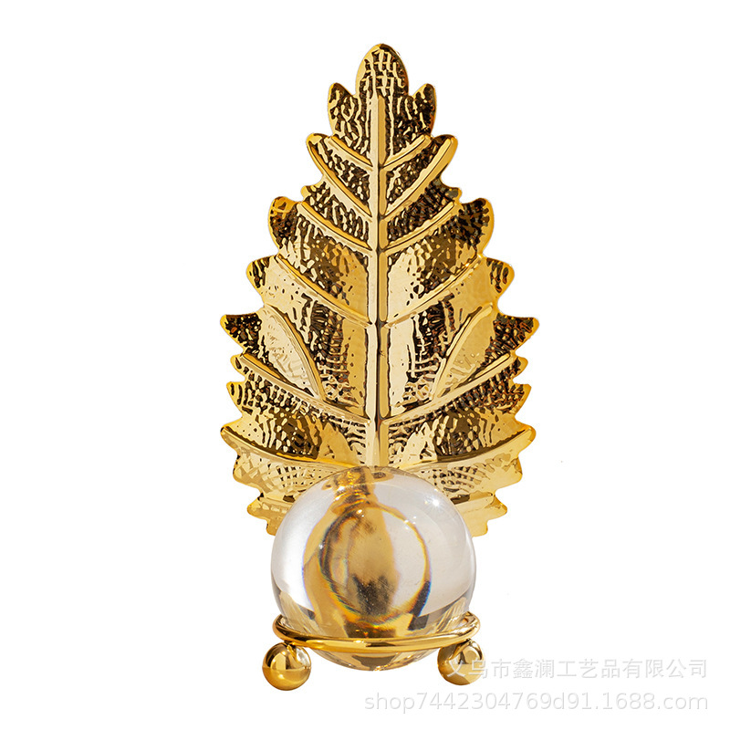 メーカー直販鉄芸金色の木の葉水晶玉置物創意家庭玄関テレビ戸棚事務デスクトップ置物