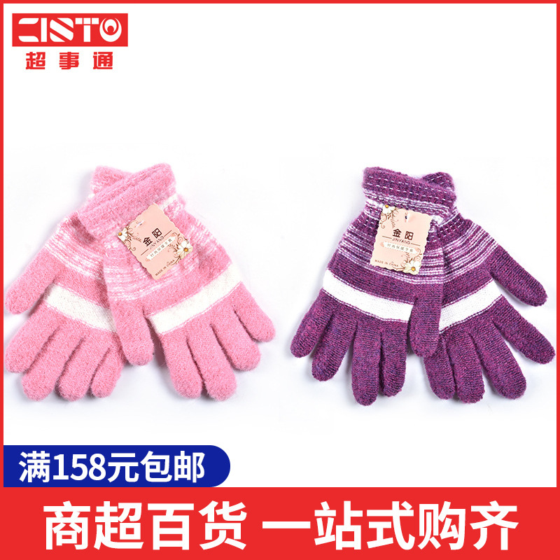 女性用冬保温純色ニット手袋ジャカード分指手袋現物通用成人手袋