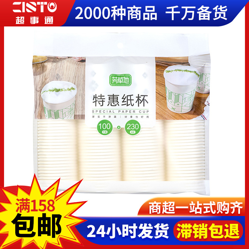 芳草原の白いプリント紙コップ二重厚使い捨て紙コップ家庭用ティーカップが漏れない100個入り