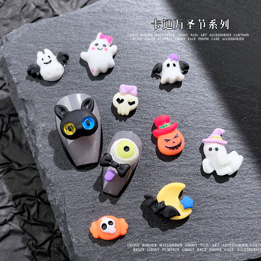 新しいハロウィーン漫画ネイルアクセサリーかわいい小鬼スカル異瞳黒猫diy樹脂ネイルアクセサリー
