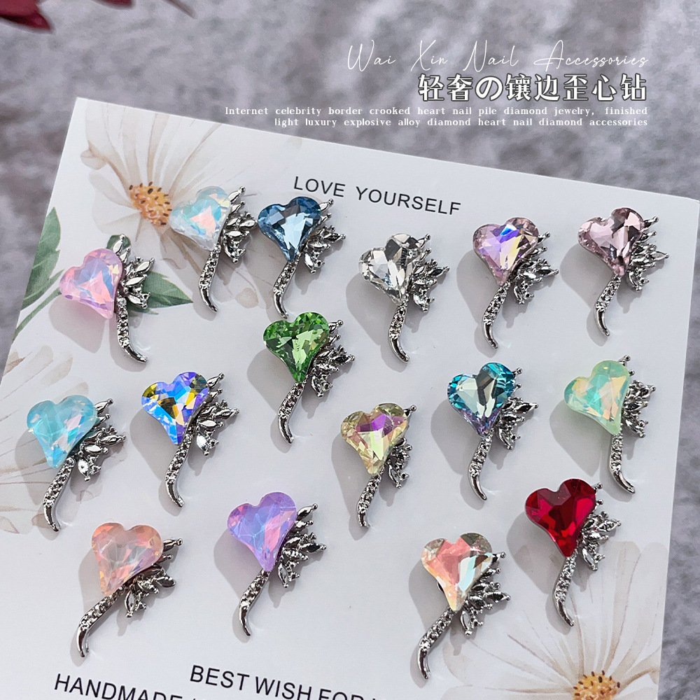 ネットの赤い軽豪華な縁の歪んだ心のドリルの合金のネイルアクセサリーの爆発的な立体の異形の愛は甲の爪の装飾を身につけます。