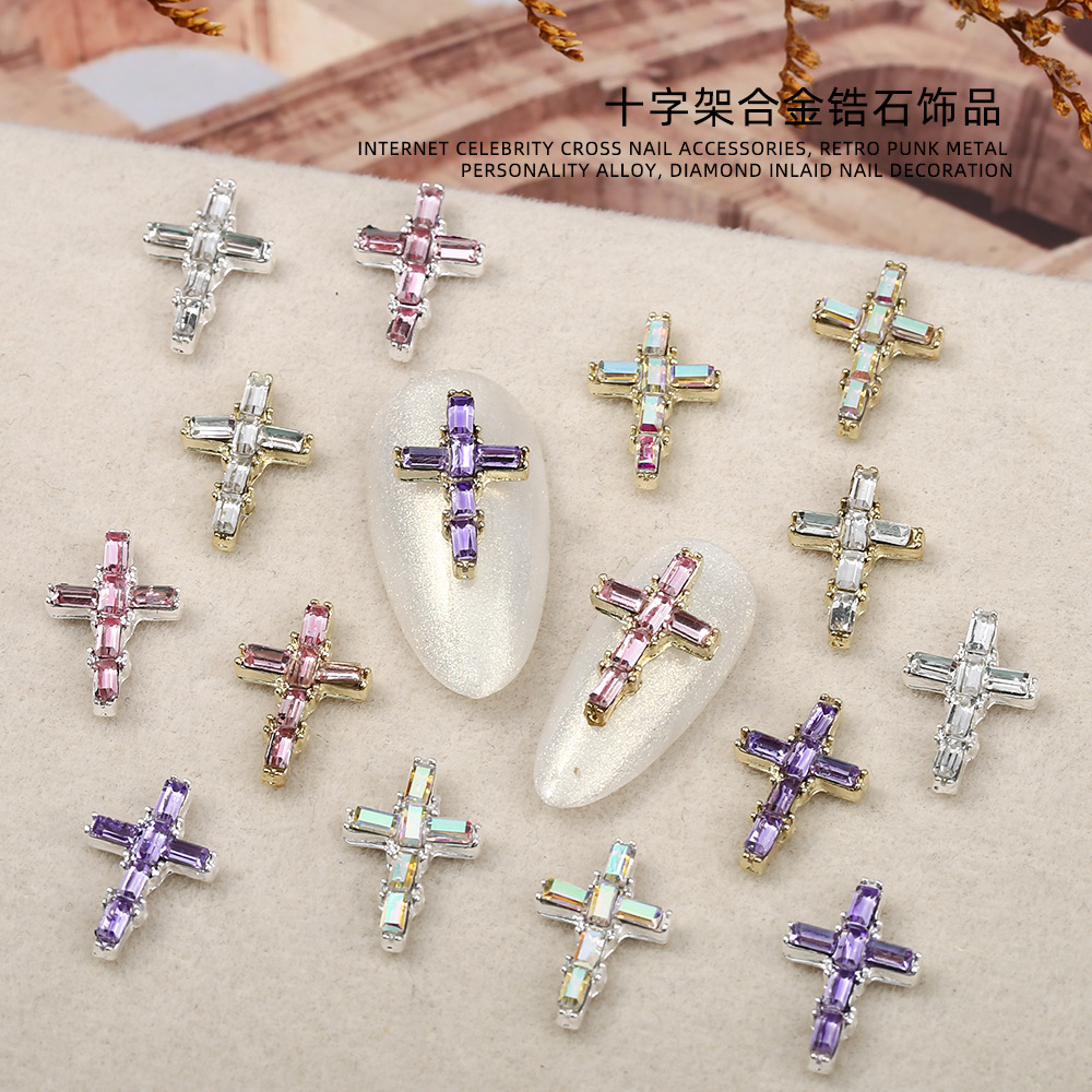 ネットの赤い新型の軽くて豪華なジルコンのネイルアクセサリーの爆発的な立体のカラーは十字の個性を入れて甲の部品を身につけます。
