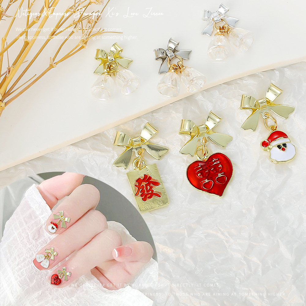 ネットの赤い新型のネイルの合金の装飾品の金属の蝶結びの幻彩の水晶の鈴の爪のドリルのdiyのイヤリングの部品